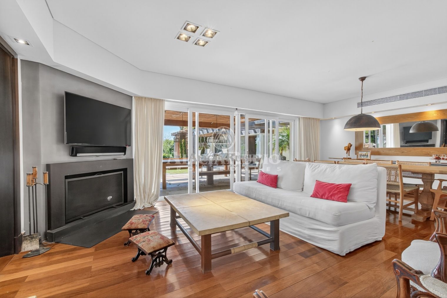 Entrada principal con escritorio y ESTAR con la estufa a leña. doble ventana, persiana eléctrica y salida a jardín. lateral. Aire Acondicionado central regulado individualmente.